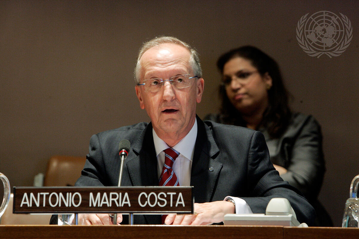 Antonio Maria Costa, Executive Director of the United Nations Office on Drugs and Crime (UNODC), addresses the launch of the West Africa Coast Initiative to combat drug trafficking in West Africa. Mr. Costa said the Initiative aimed at strengthening national capacities and cross-border cooperation to tackle the rampant organized crime and drug trafficking in the fragile subregion.