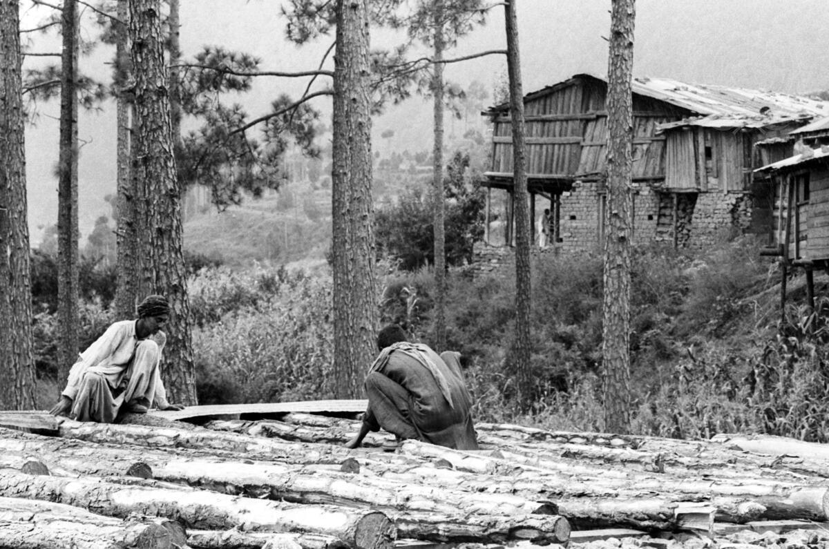 Wood-cutters at work in the Murree Hills region.