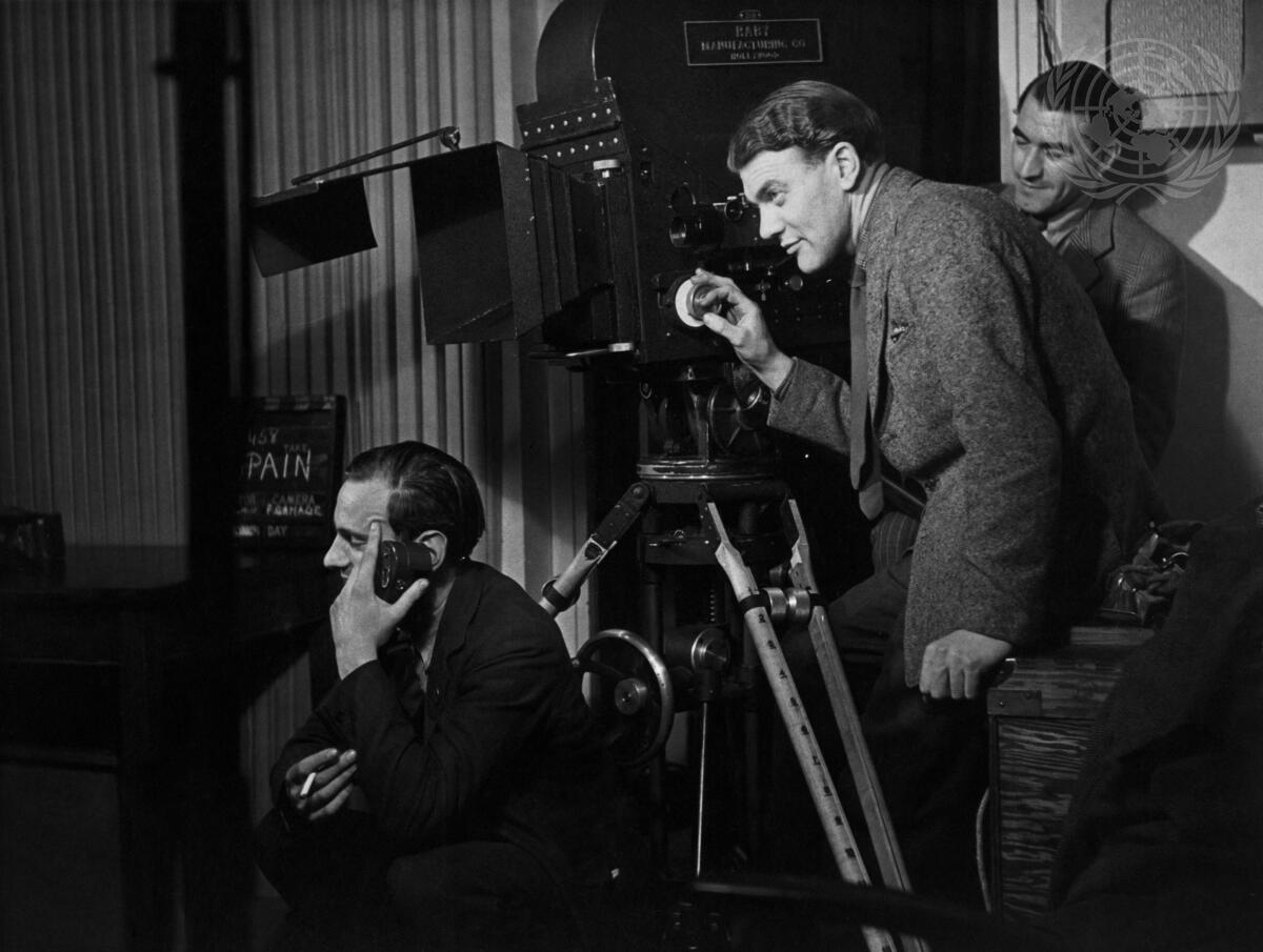 The Crown Film Unit at work filming the proceedings of the General Assembly.