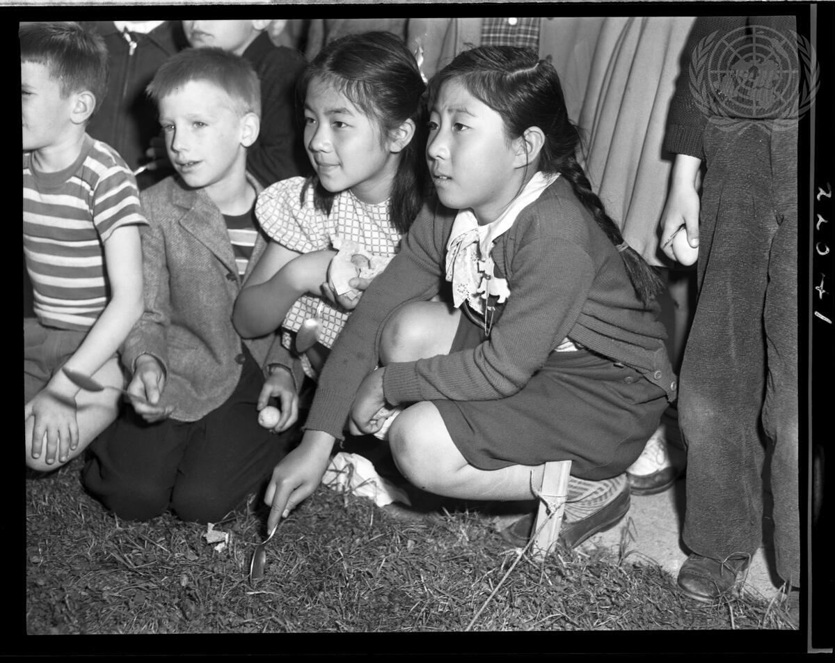Children of Parkway Village take part in egg rolling competition during Easter Holidays.