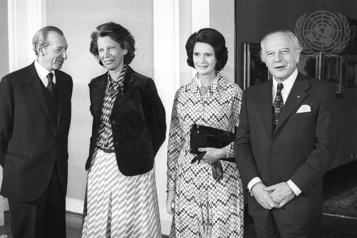 Secretary-General Kurt Waldheim and his wife (2nd from right) with the President of the Federal Republic of Germany, Walter Scheel and his wife at the Villa Hammerschmidt in Bonn.