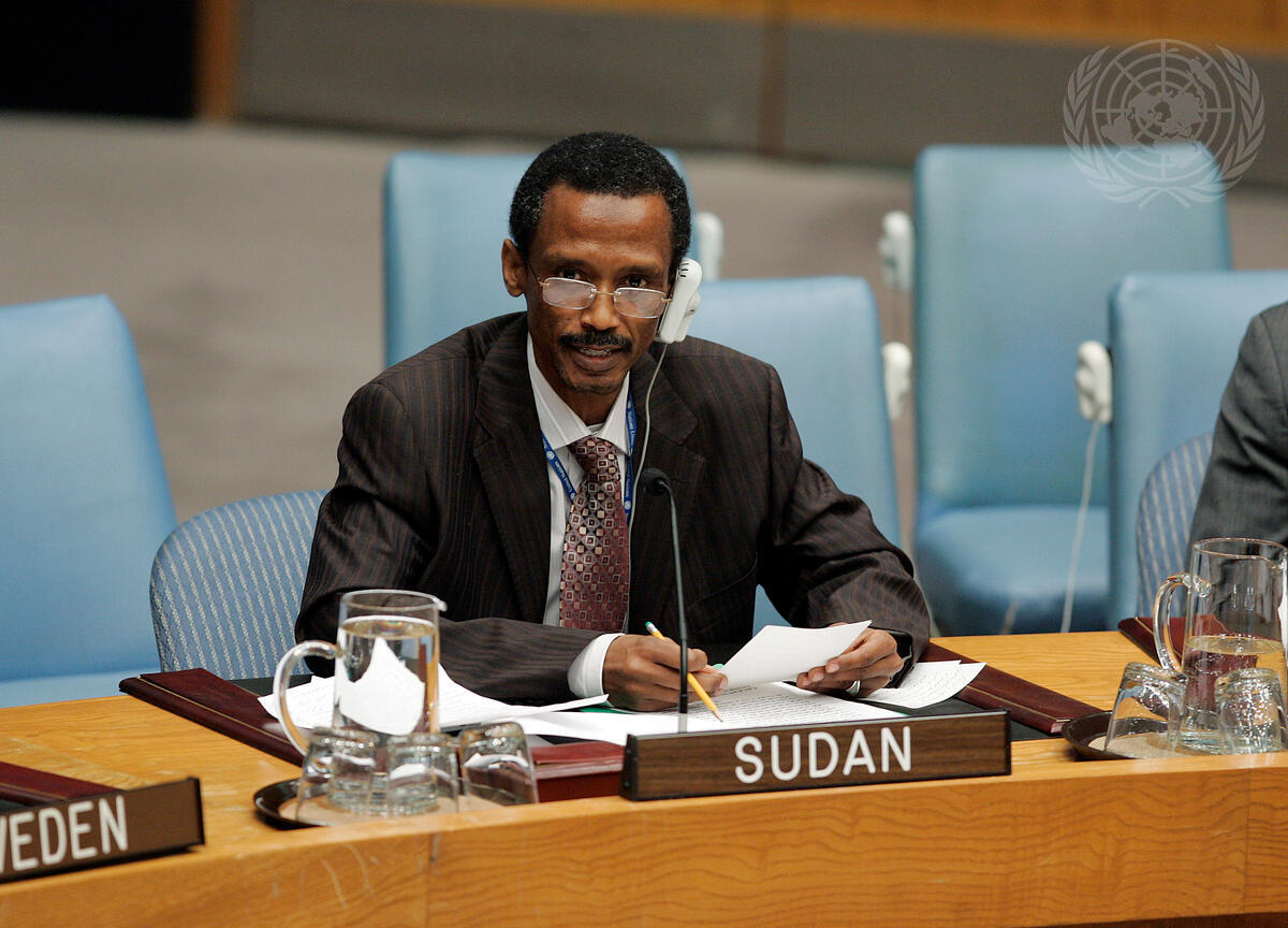 Hassan Hamid Hassan, Counsellor of the Permanent Mission of the Sudan to the United Nations, addresses a Security Council meeting on the situation in his country.