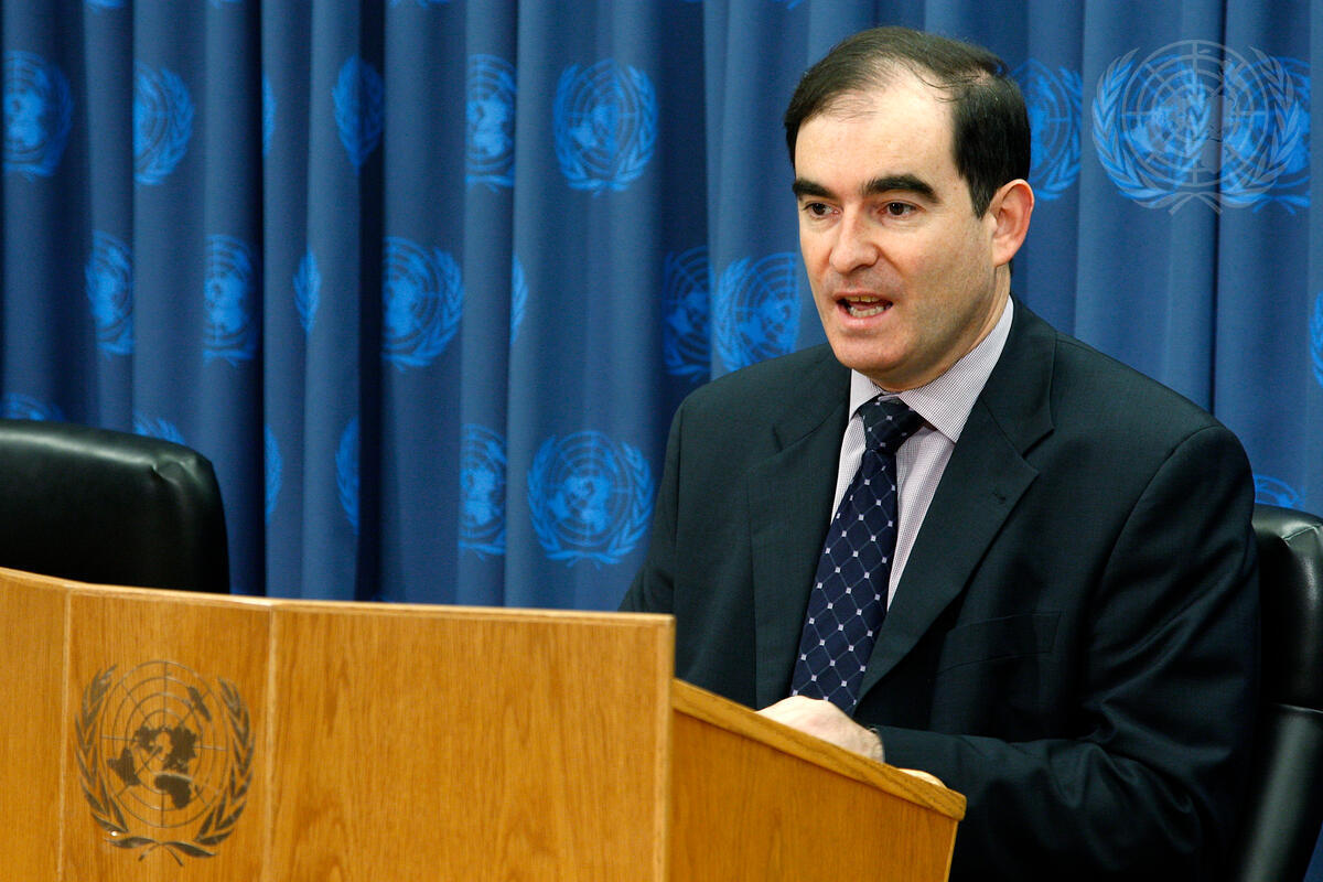 John Ging, Director of Operations in Gaza for the United Nations Relief and Works Agency for Palestine Refugees in the Near East (UNRWA), addresses a press conference on the humanitarian situation in Gaza.