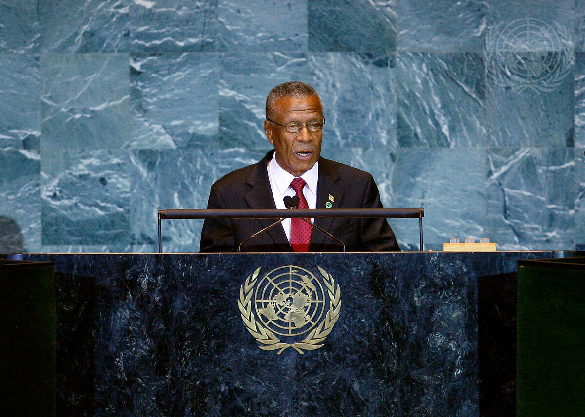 Tillman Joseph Thomas, Prime Minister of Grenada, addresses the closing plenary session of the Summit on Climate Change. Convened by Secretary-General Ban Ki-moon, the Summit is aimed mobilizing the highest level political will needed to reach a fair, effective, and scientifically ambitious global climate deal at the United Nations Climate Change Conference in Copenhagen this December.