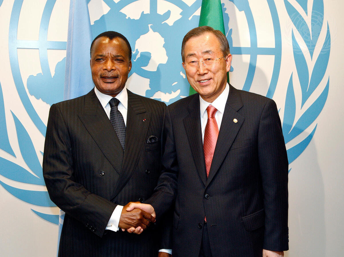 Secretary-General Ban Ki-moon (right) meets with Denis Sassou Nguesso, President of the Republic of the Congo.