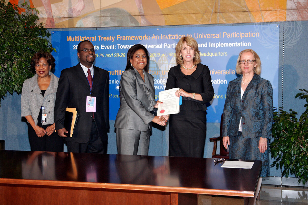Paula Gopee Scoon (third from left), Minister of Foreign Affairs of the Republic of Trinidad and Tobago, participates in the 2009 Treaty Event: ""Towards Universal Participation and Implementation"". During the event countries are invited to sign, ratify or accede to multilateral treaties.