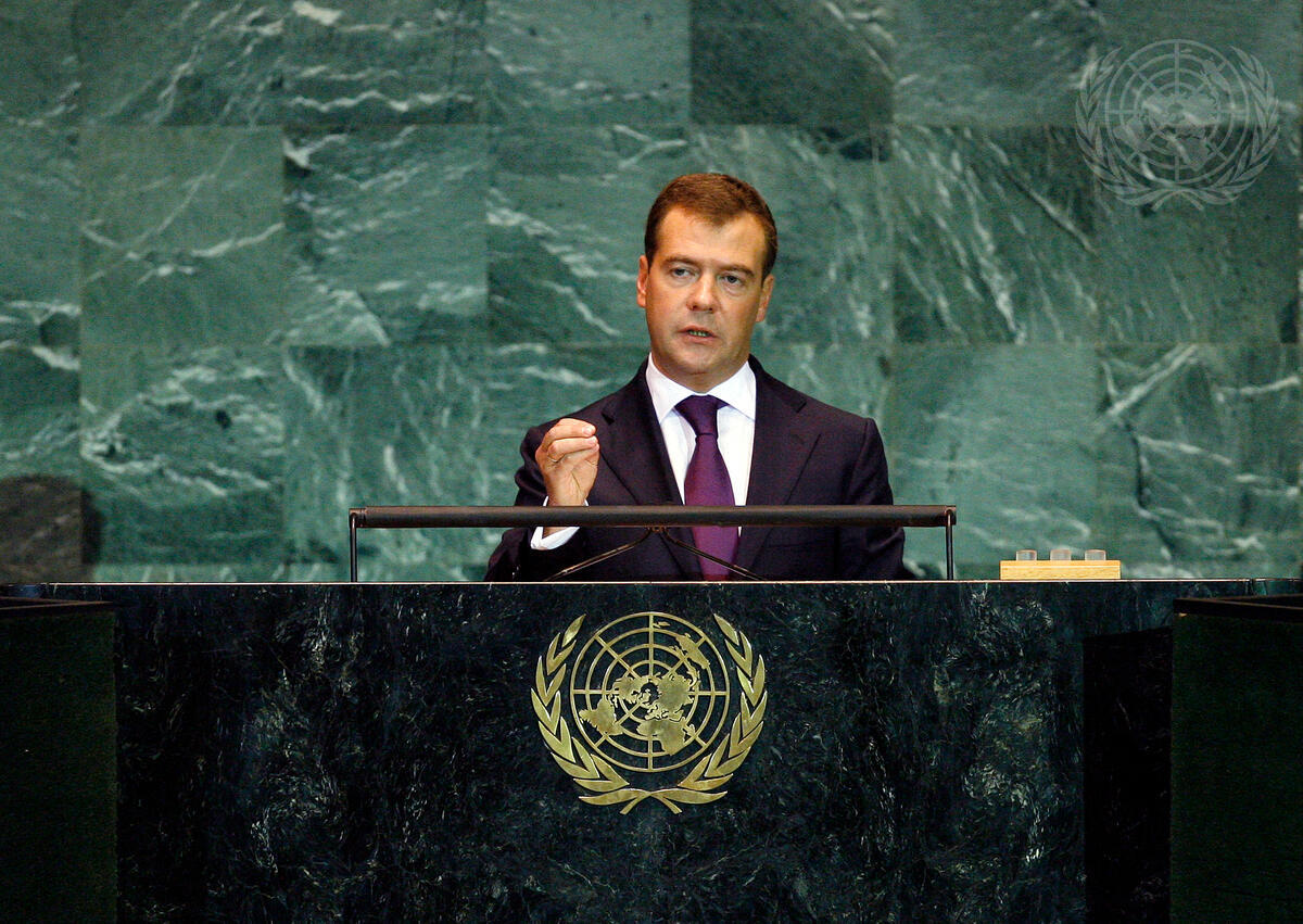 Dmitry A. Medvedev, President of the Russian Federation, addresses the general debate of the sixty-fourth session of the General Assembly.