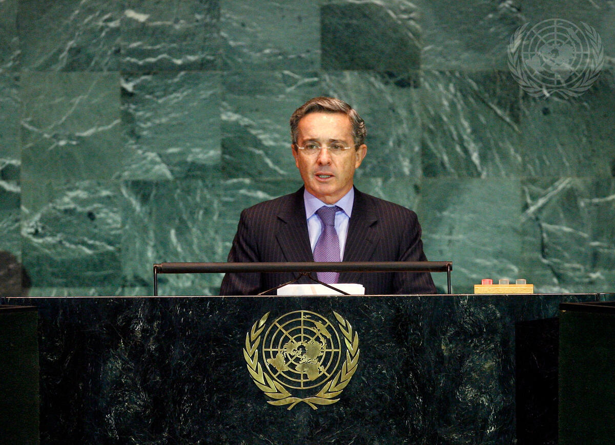 Álvaro Uribe Vélez, President of the Republic of Colombia, addresses the general debate of the sixty-fourth session of the General Assembly.