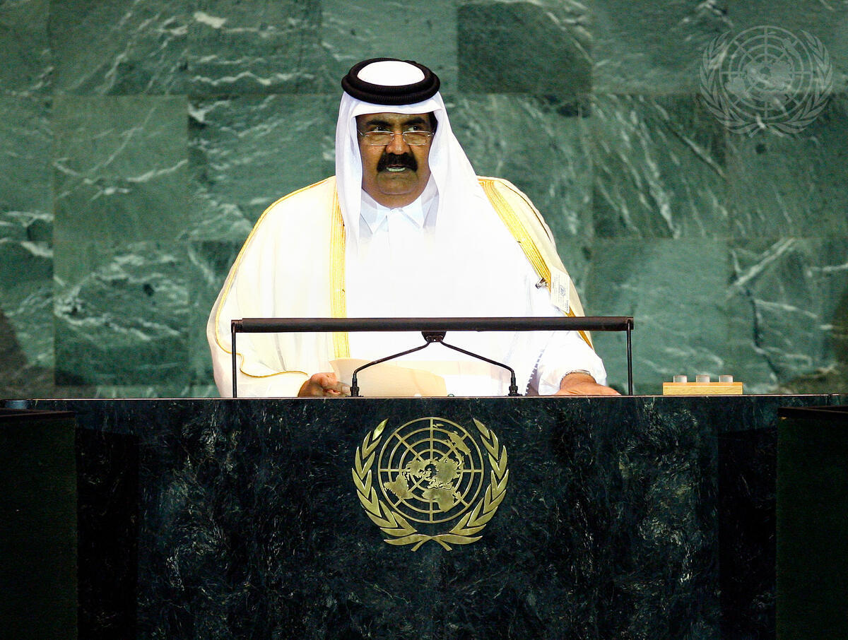 Sheikh Hamad bin Khalifa Al-Thani, Emir of the State of Qatar, addresses the general debate of the sixty-fourth session of the General Assembly.