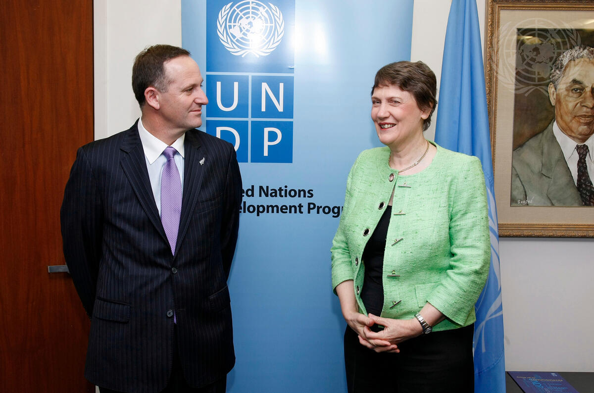 Helen Clark (right), Administrator of the United Nations Development Programme (UNDP), meets with John Key, Prime Minister of New Zealand.