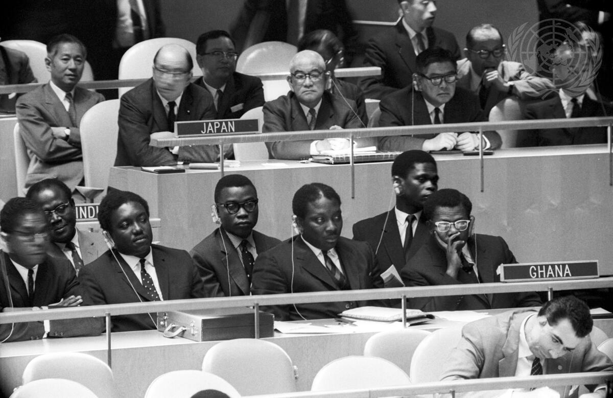 Seen here in the foreground are members of the Ghana delegation which is headed by Mr. Ako Adjel (right), Minister for Foreign Affairs.