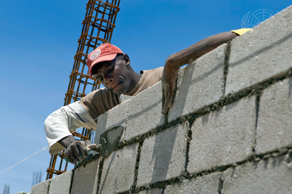 A construction worker plasters cement down for a new prison in the Port-au-Prince suburb of Croix-des-Bouquets, partially funded by the United Nations Stabilization Mission in Haiti (MINUSTAH). It is expected that the new prison will help alleviate overcrowding in Haiti's only penitentiary in downtown Port-au-Prince.