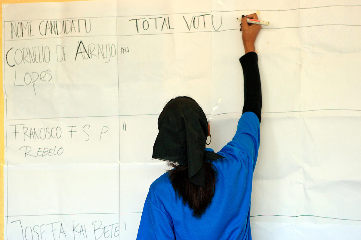 An election worker counting votes at the Second National Village Council (sucos) elections of 9 October in Dili, Timor-Leste. The elections, which are supervised by the United Nations Integrated Mission in Timor-Leste (UNMIT), are held simultaneously in 442 sucos across the country. Candidates are vying for positions as village chiefs and members of village councils for the first time since the first round of village elections in 2004 and 2005.