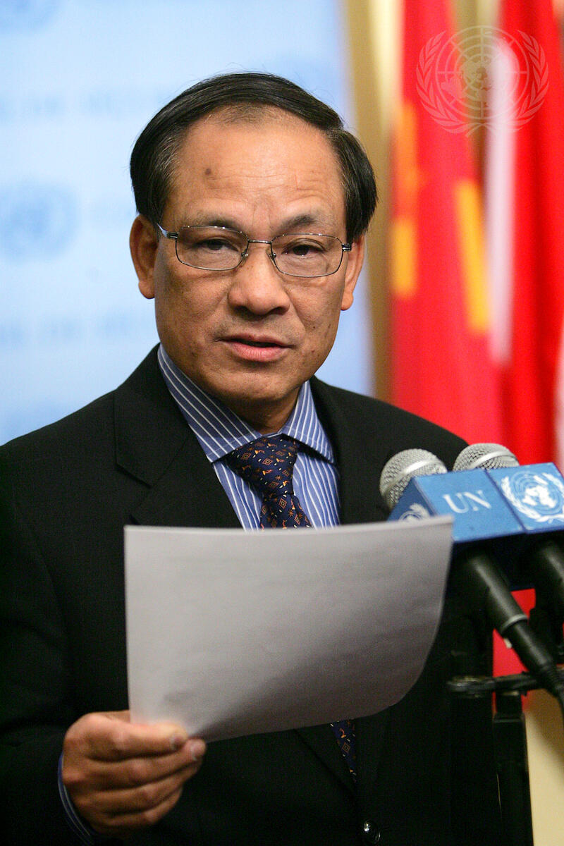 Le Luong Minh, Permanent Representative of the Socialist Republic of Viet Nam to the United Nations and President of the Security Council for the month of October, reads out a Security Council press statement, condemning ""in the strongest terms"" the suicide bombing at the Indian embassy in Afghanistan.