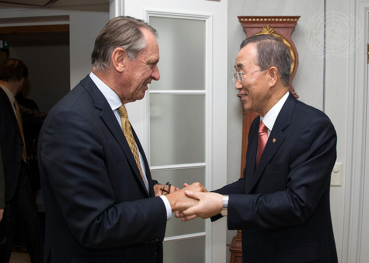 Secretary-General Ban Ki-moon (right) meets with Jan Eliasson, President of the sixtieth session of the General Assembly.
