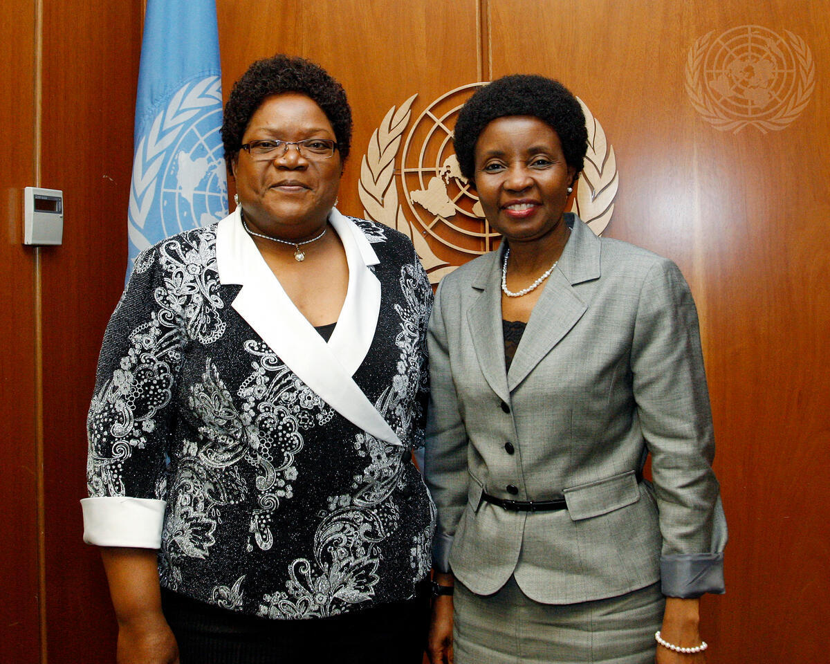 Deputy Secretary-General Asha-Rose Migiro (right) meets with Joyce Muguru, Vice-President of the Republic of Zimbabwe.