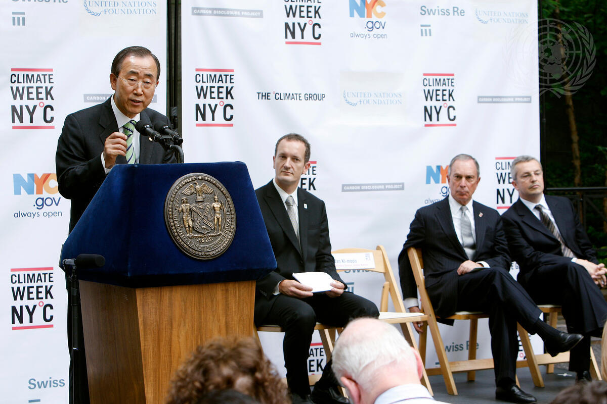 Secretary-General Ban Ki-moon participates in a press conference to announce Climate Week in New York City and to highlight a global summit for world leaders and other major events to encourage a successful Copenhagen outcome to the negotiations for a new agreement on climate change in December.