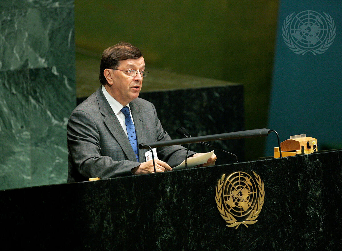 Paavo Matti Väyrynen, Minister for Development and Trade of Finland, addresses a United Nations Conference on the World Financial and Economic Crisis and its Impact on Development.