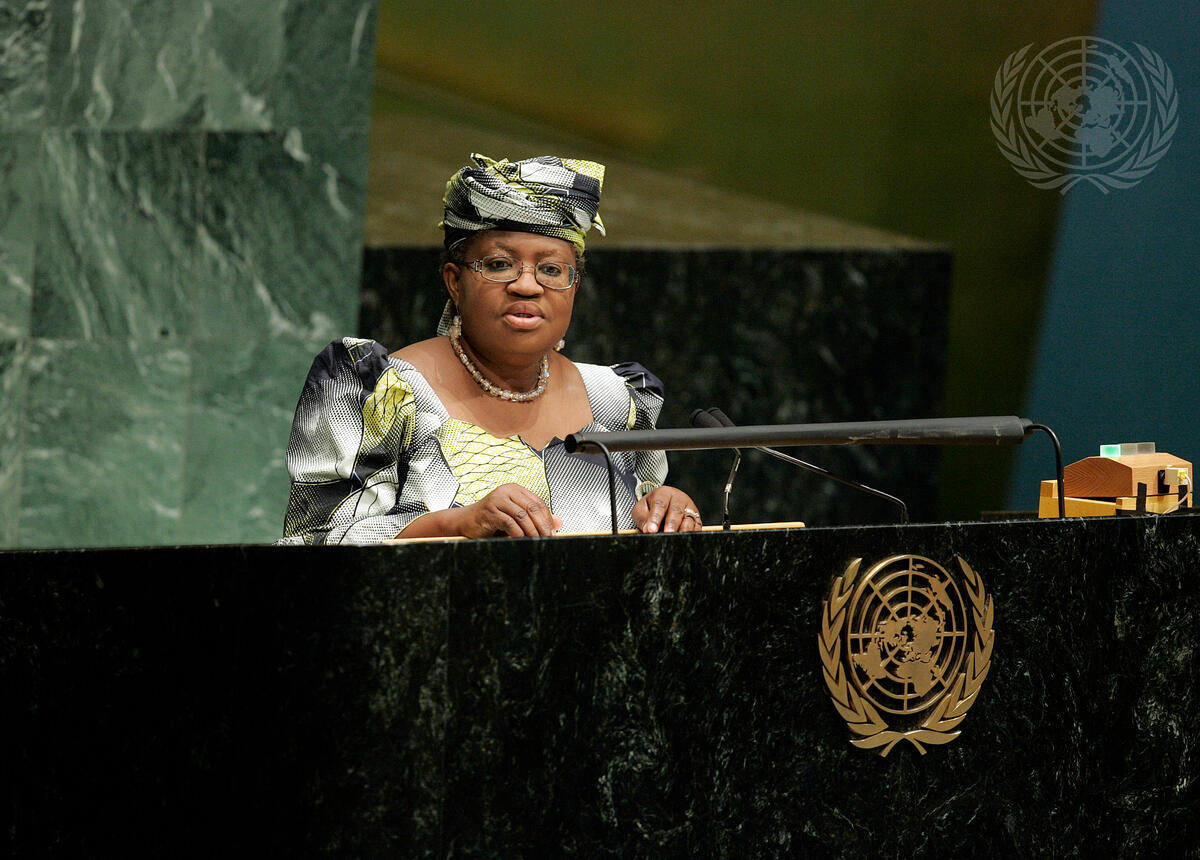 Ngozi Okonjo-Iweala, Managing Director of the World Bank and former Minister for Foreign Affairs and Minister of Finance of Nigeria, addresses a United Nations Conference on the World Financial and Economic Crisis and its Impact on Development.