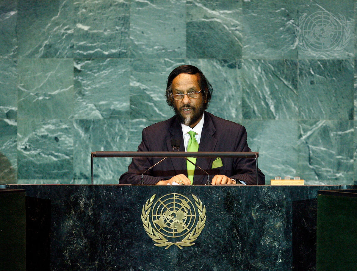 Rajendra Pachauri, Chair of the Intergovernmental Panel on Climate Change (IPCC), addresses the opening plenary session of the Summit on Climate Change. Convened by Secretary-General Ban Ki-moon, the Summit aims at mobilizing the highest level political will needed to reach a fair, effective, and scientifically ambitious global climate deal at the United Nations Climate Change Conference in Copenhagen this December.