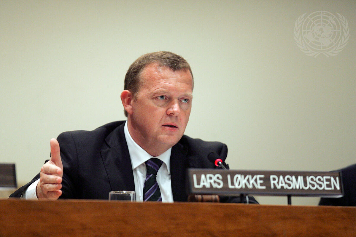 Lars Løkke Rasmussen, Prime Minister of Denmark, addresses correspondents on climate change at a press conference organized by the United Nations Leadership Forum on Climate Change.
