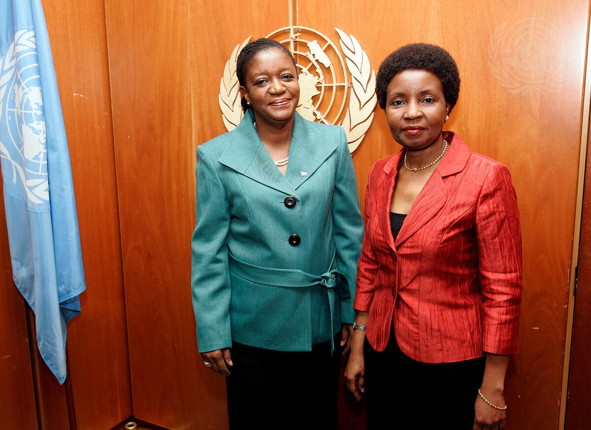 Deputy Secretary-General Asha-Rose Migiro (right) meets Zainab Hawa Bangura, Minister for Foreign Affairs of Sierra Leone.