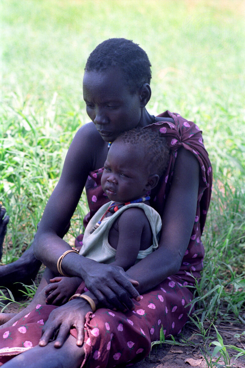 A Nuer mother and child wait to see the UNICEF doctor. [August 1990]