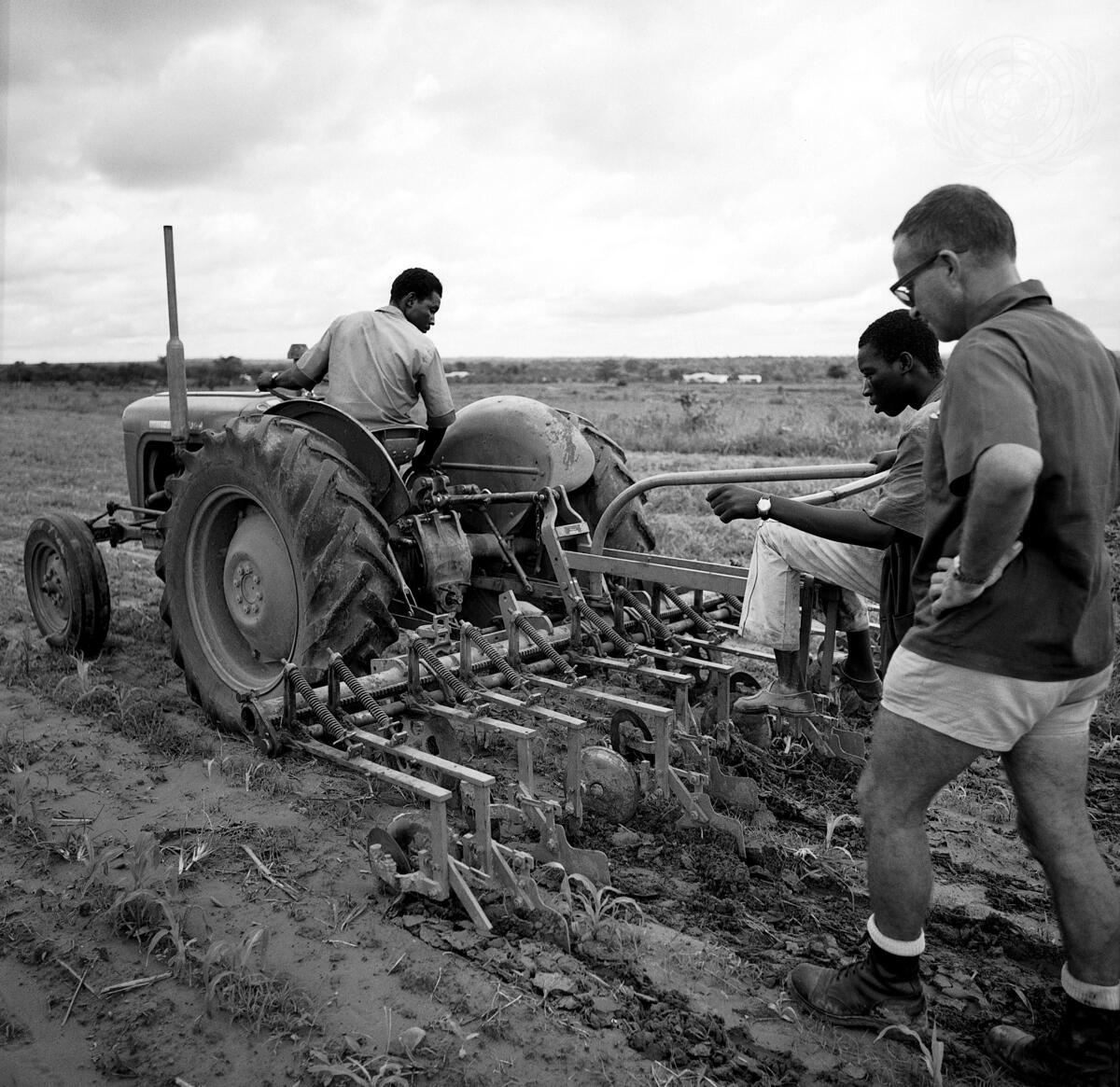 Second dressing of a field at the Agricultural Training Centre in Matourkou. At right, is G. Dar (Israel), FAO expert in farm management. [Exact date unknown]
