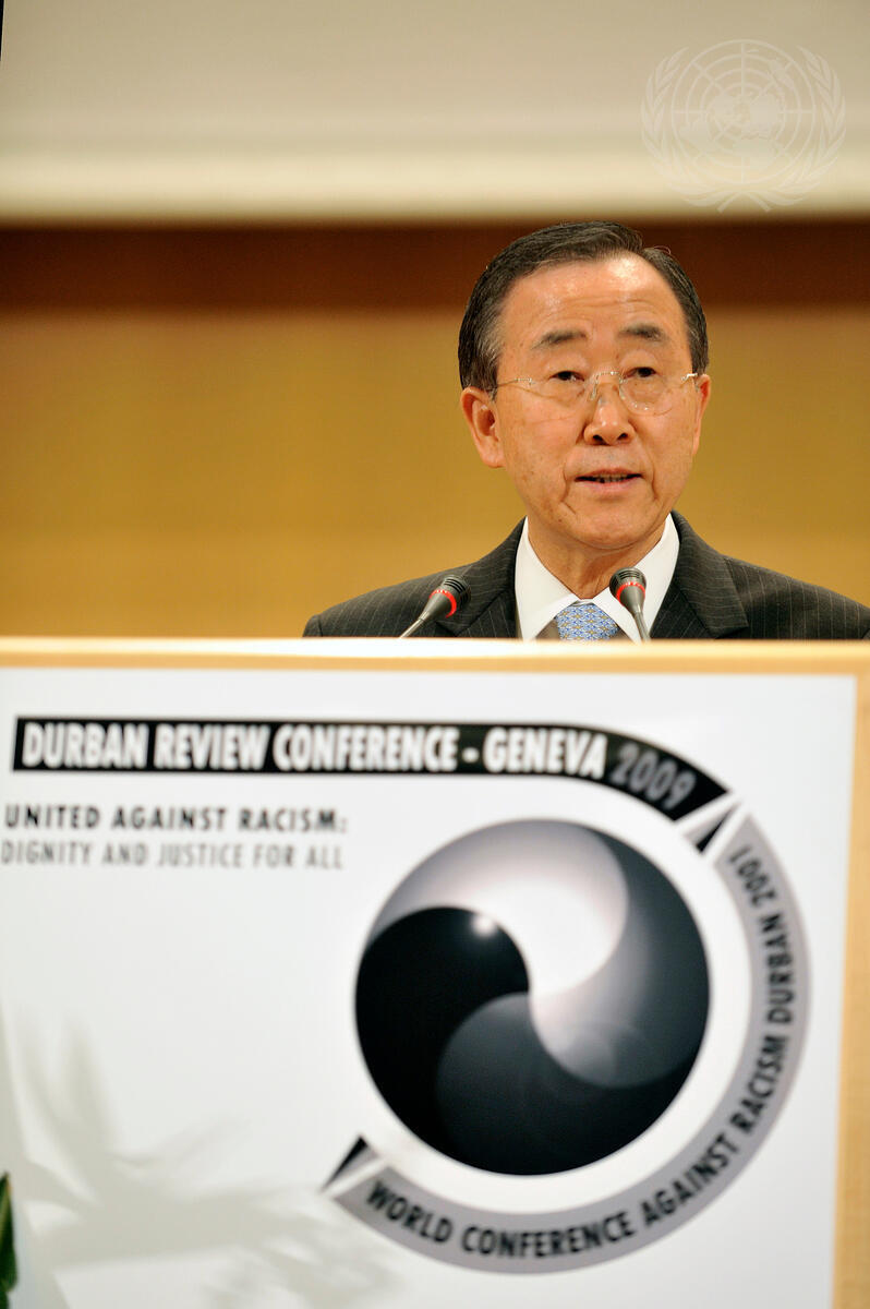 Secretary-General Ban Ki-moon addresses the opening of the Durban Review Conference against racism.