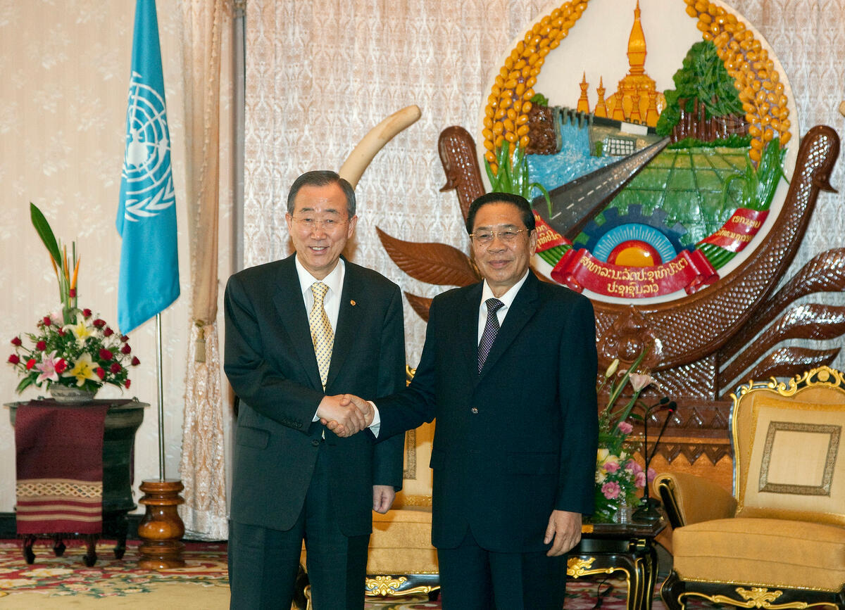 Secretary-General Ban Ki-moon (left) meets with Choummaly Sayasone, President of Lao People's Democratic Republic.