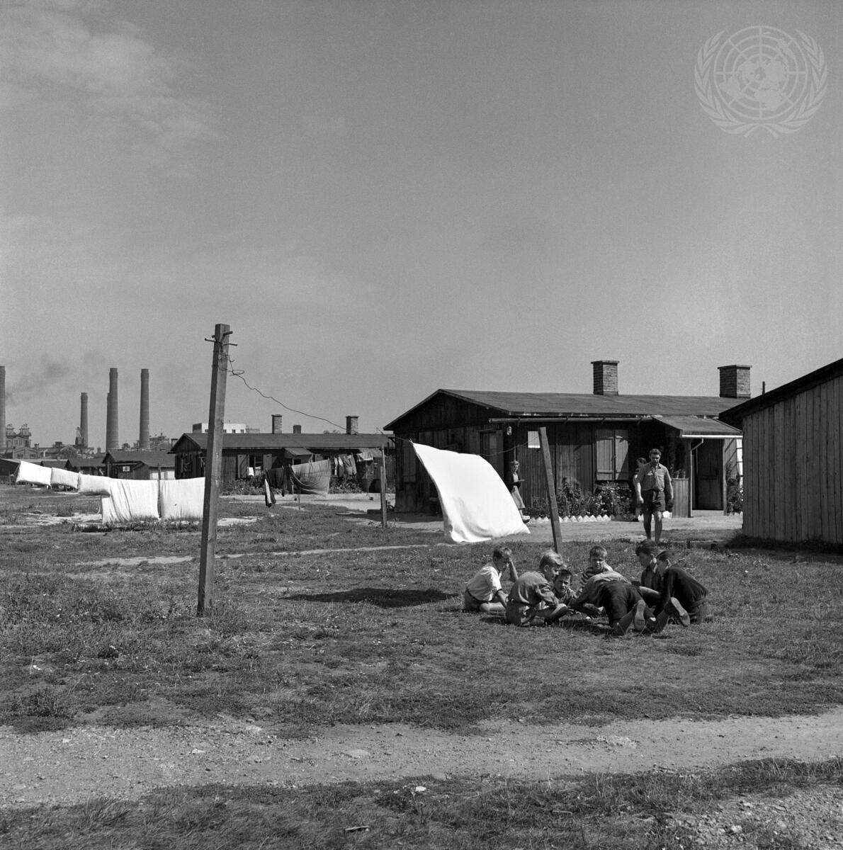 This picture shows part of Camp Simmering Heide, in Vienna, Austria, where 1,200 Volksdeutsches(former German minorities) refugees live. The camp is composed of 27 barracks, five of which were built last year.
