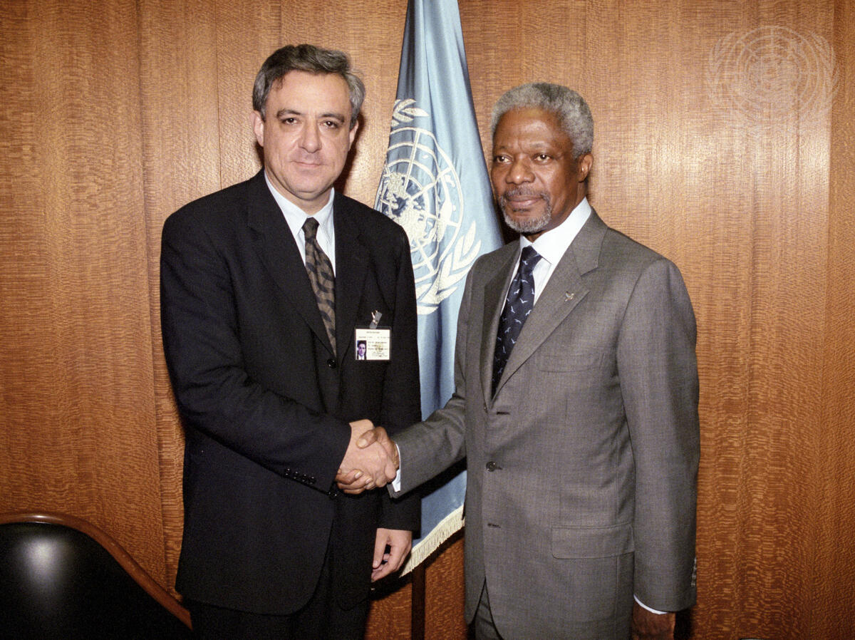 Secretary-General Kofi Annan (right) meets with Vartan Oskanian, Foreign Minister of Armenia.