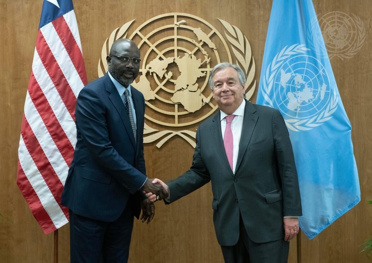 Secretary-General António Guterres (right) meets with George Manneh Weah, President of the Republic of Liberia.
