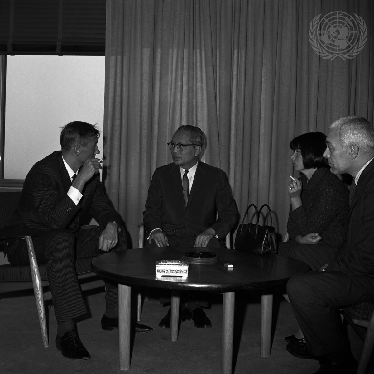 Left to right: Yevgeny Yevtushenko; Secretary-General U Thant; Mrs. Yevtushenko; and interpreter Albert C. Todd, Jr.
