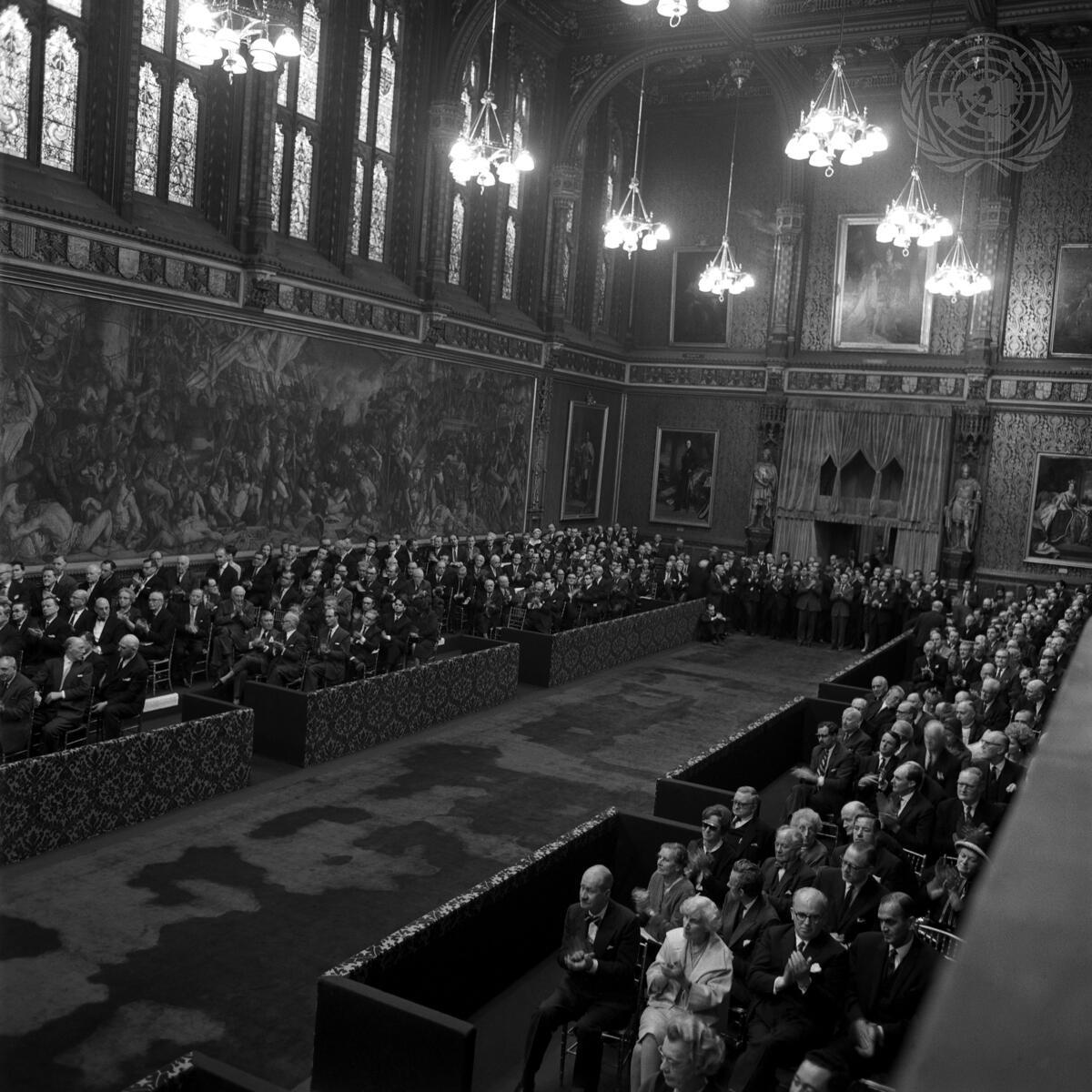 While in London, Secretary-General U Thant met with members of both Houses of Parliament. Photograph shows a partial view of the House of Lords at the conclusion of a statement which was made by Secretary-General U Thant.