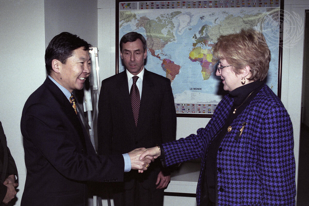Deputy Secretary-General Louise Frechette (right) meeting with Radnaasumbereliin Gonchgdorj (left), the Speaker of the Mongolian Parliament.