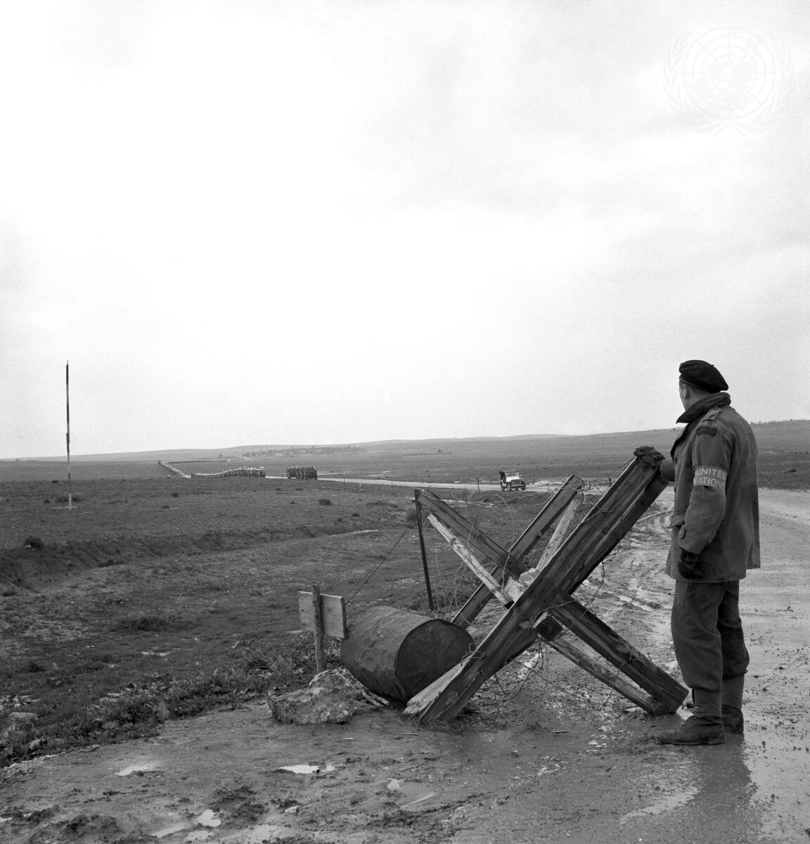 Peaceful evacuation of Al Faluja is ensured by United Nations escorts. The Israeli authorities extended their full cooperation to help avoid incidents during the withdrawal movements. The route was cleared of obstructions and Israeli troops received orders to keep away from the road used by the convoy. [on or around 26 February 1949]