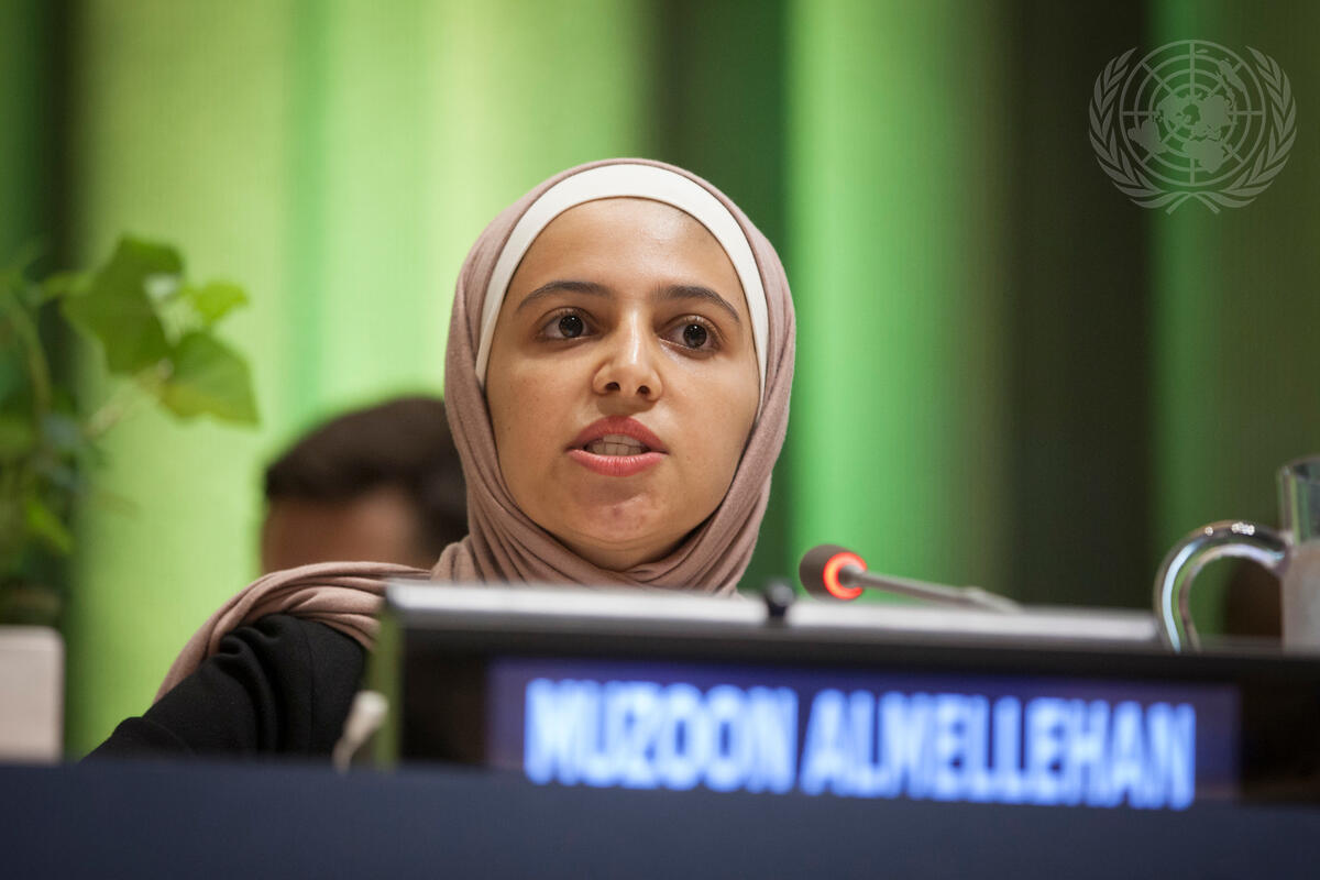 Muzoon Almellehan, education activist, Syrian refugee and UN Children’s Fund (UNICEF) Goodwill Ambassador, speaks at the high-level commemorative event of the General Assembly on thirtieth anniversary of the adoption of the Convention on the Rights of the Child.