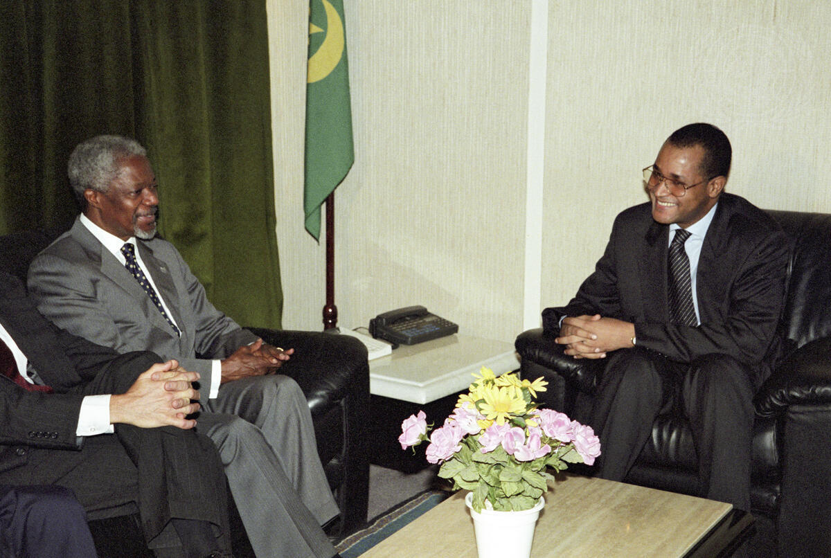 Secretary-General Kofi Annan (left) with Mohamed Lemani Ould Guig, Prime Minister of Mauritania.