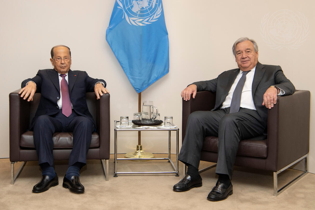 Secretary-General António Guterres (right) meets with Michel Aoun, President of the Republic of Lebanon.