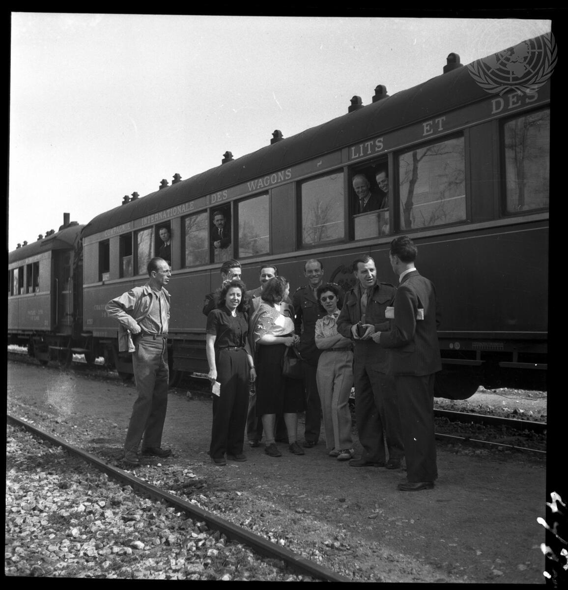 Members of the Commission of Investigation Concerning Greek Frontier Incidents are greeted by the population at the railroad station.