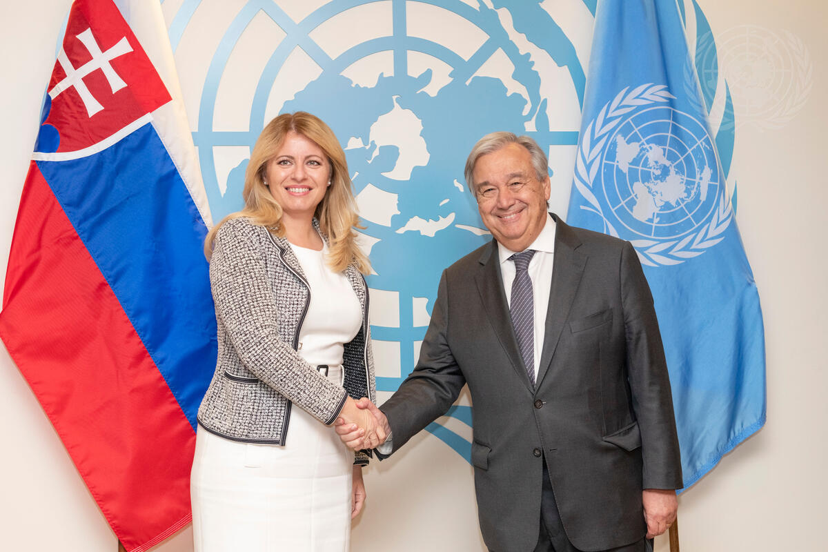 Secretary-General António Guterres (right) meets with Zuzana Caputová, President of the Slovak Republic.