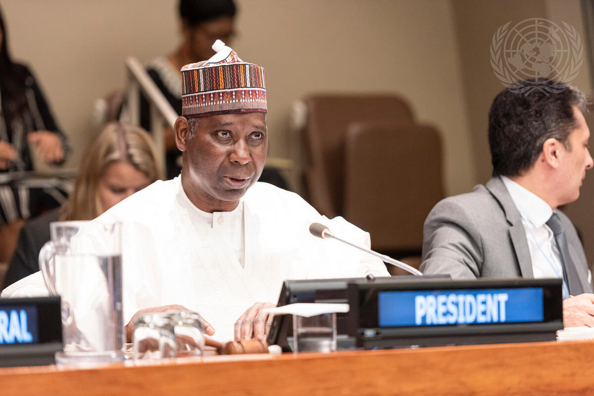 Tijjani Muhammad-Bande, President of the seventy-fourth session of the United Nations General Assembly, attends the high-level plenary meeting to commemorate and promote the International Day for the Total Elimination of Nuclear Weapons.