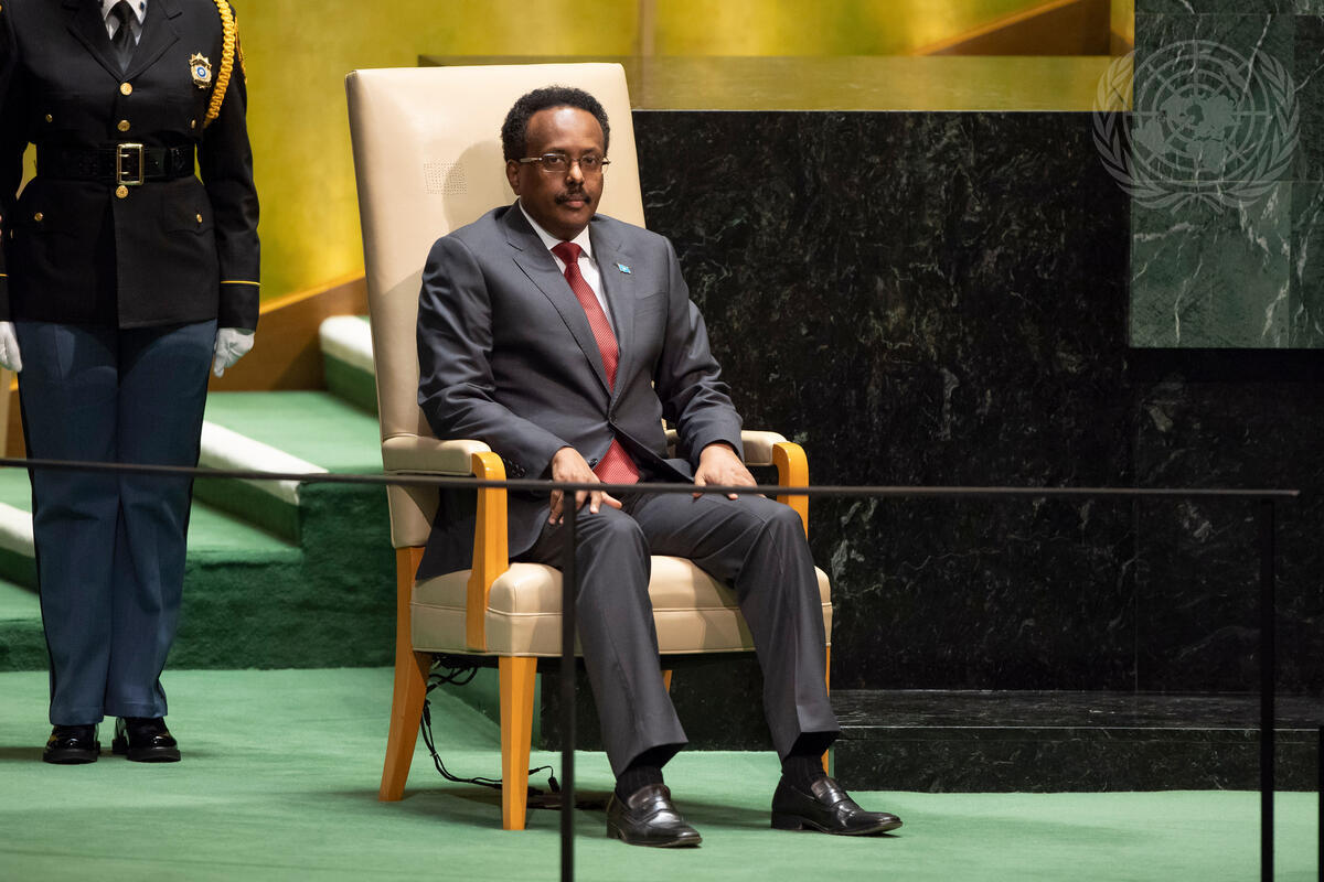 Mohamed Abdullahi Mohamed Farmajo, President of the Federal Republic of Somalia, moments before addressing the general debate of the General Assembly's seventy-fourth session.