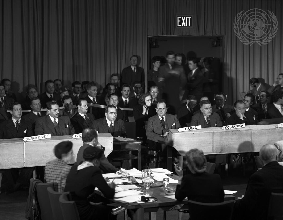 Horacio Vicioso Soto, Dominican Republic, alternate; Dr. Jan Papanek, Czechoslovakia, Del. Chairman, Perm. Rep; Henry Cattan, member of delegation of Arab Higher Committee for Palestine; Dr. Carlos Blanco, Cuba, alternate, Francisco de Paula Guiterrez, Costa Rica, Del. Chairman; Dr. Alfonso Lopez, Colombia, Del. Chairman, Perm. Rep.