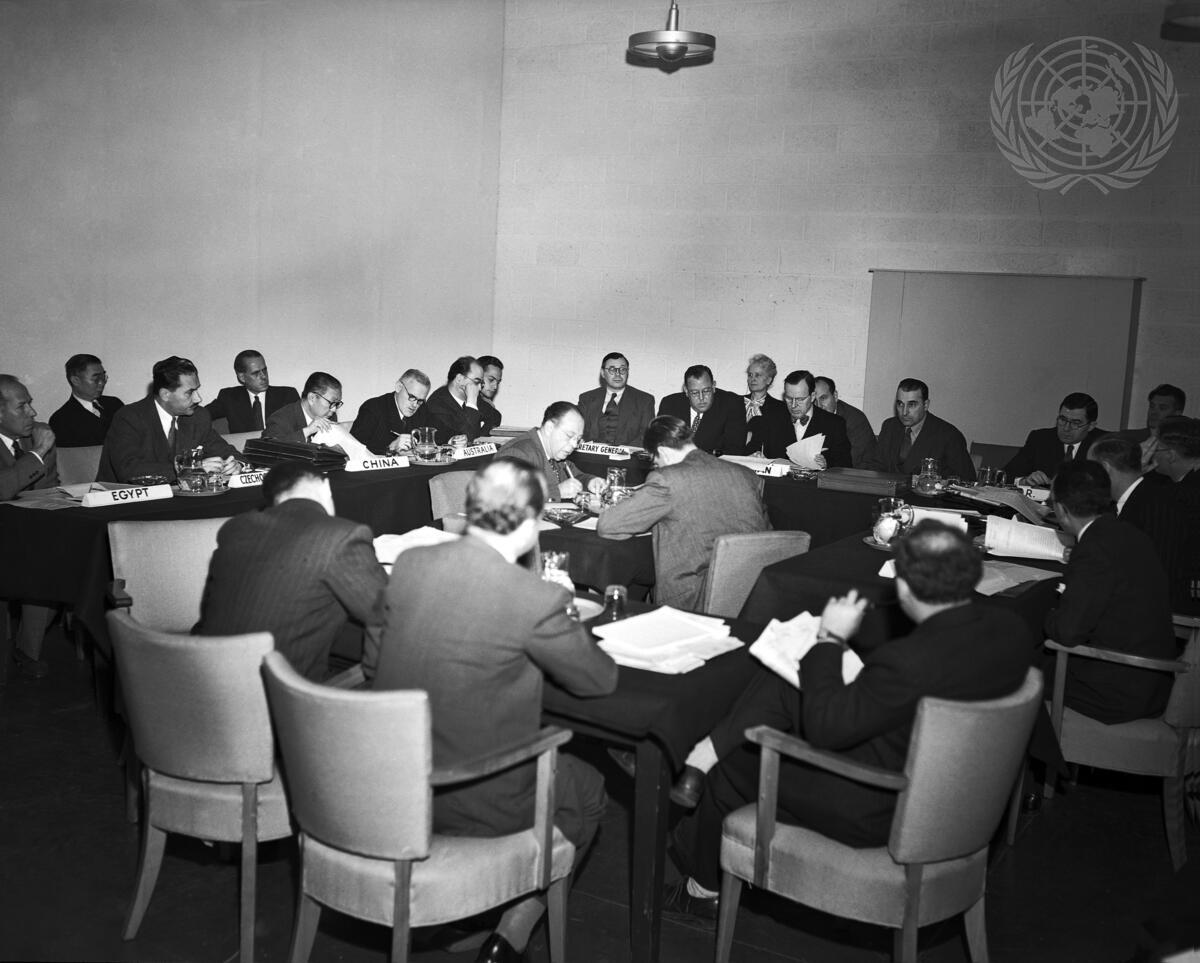 Mahmoud Hassan Pasha, Egypt, Del. Chairman, Chairman of Committee 3 (Social, Cultural and Humanitarian); Dr. Jan Papanek, Czechoslovakia, Del. Chairman, perm. Rep; Dr. Quo Tai-chi, China, Del. chairman, GA Vice-President; Col. William Roy Hodgson, Australia, Del. Chairman; Arkady A. Sobolev, USSR, ASG for Security Council; Trygve Lie, Norway, UN Secretary-General; Lester B. Pearson, Canada, Chairman, Committee 1 & Sub-Committee 6, Del. Chairman; Dr. Dragoslav M. Protitch, Yugoslavia, UN Director Admin and General Div., Security Council Dept; Andrei A. Gromyko, USSR, Del. Chairman, Perm. Rep., Assembly Vice-President.