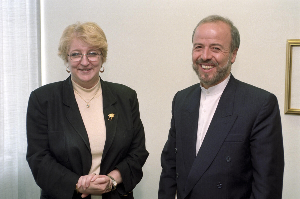 Deputy Secretary-General Louise Frechette (left) meets with Ambassador Seyed Mohammad Hadi Nejad-Hosseinian, Permanent Representative of the Islamic Republic of Iran.