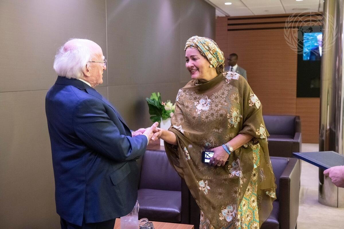Deputy Secretary-General Amina J. Mohammed (right) meets Michael D. Higgins, President of the Republic of Ireland.