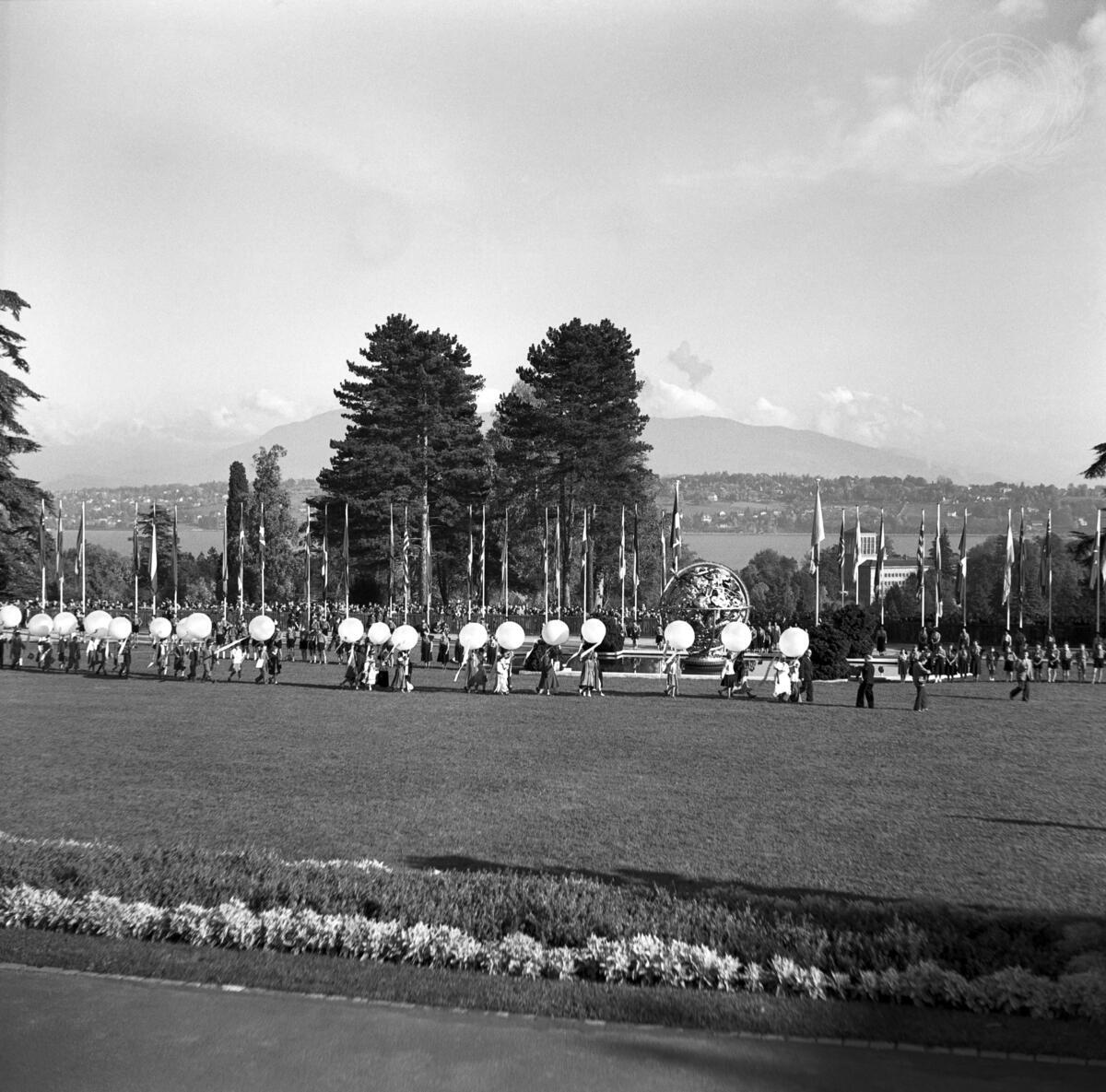 The occasion was a ceremony held today to begin celebrations for U.N. Day, at the Cour d’honneur of the Palais des Nations, in Geneva.