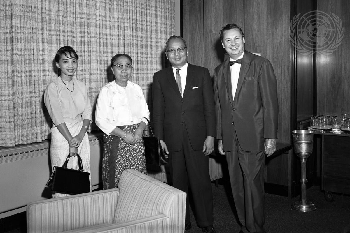 The Secretary-General was greeted on his arrival home at Idlewild Airport, by (l. to r.) his daughter, Aye Aye, Mrs. Thant and Ambassador Nikolai Trofimovich Fedorenko, Permanent Representative of the USSR to the UN.